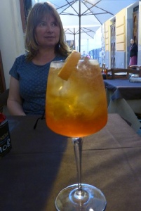 Isabelle devant un spritz, elle qui ne boit pas !!