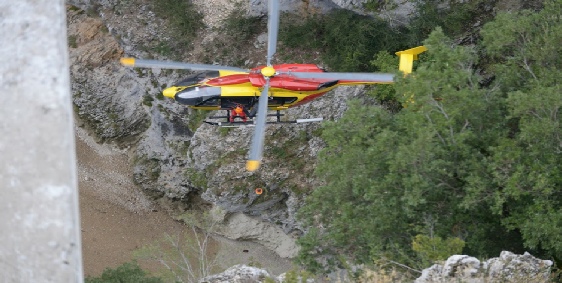 Par la force des choses nous avons assisté à l’hélitreuillage des secouristes… Le plus impressionant c’est de voir l’hélico faire du sur place sous le pont ! J’avais très peur que les pâles heurtent le rocher tant il était près ! Si vous regardez bien les deux premières photos verticales on aperçoit un point rouge dans les broussailles en haut de la photo …ça donne une idée !!