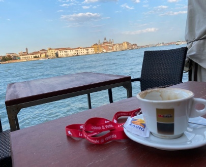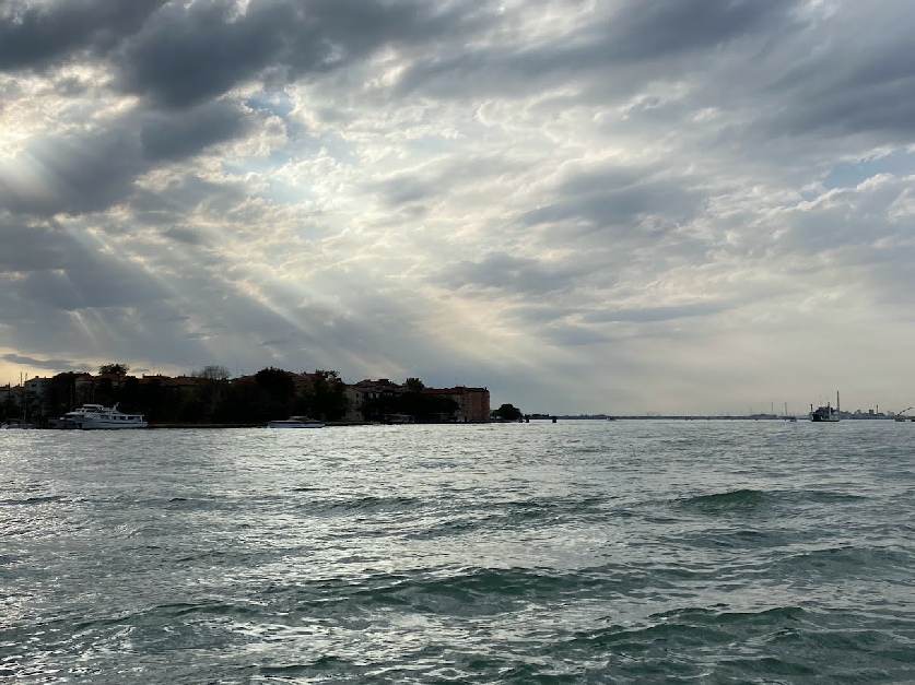 Peu de photos aujourd’hui si ce n’est… Un beau ciel pris depuis le vaporetto de retour et un cappucino à la terrasse du café en bas de chez moi !