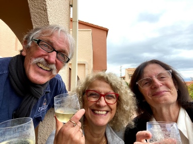 Ce matin, marché … C’est chouette de retrouver les odeurs et les couleurs… On achète du muscat de Rivesaltes et de l’ail confite pour un apéro sur la terrasse… Il fait gris mais doux !