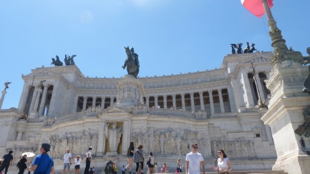 Après un bon cappucpino, nous avons attaqué le Vittoriano !Ce monument élevé à la gloire de Vittorio Emmanuel II a été très contesté car il a été édifié à la place d’un quartier médieval sur le capitole.